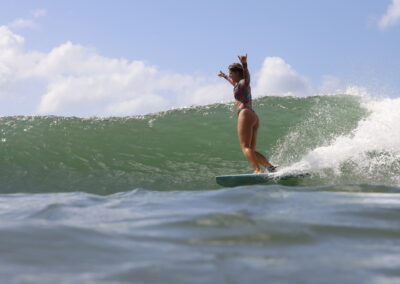 These retreats are about having fun, improving your surfing, making meaningful connections, and creating space for personal growth. Each day invites something new—whether it’s learning a new surf maneuver, exploring a fresh yoga pose, or diving deeper into your own reflection and self-awareness. Your hostesses bring deep local knowledge and a warm presence, serving as your guide and support, sharing the best spots to surf, hidden gems, and local insights to help you feel right at home.